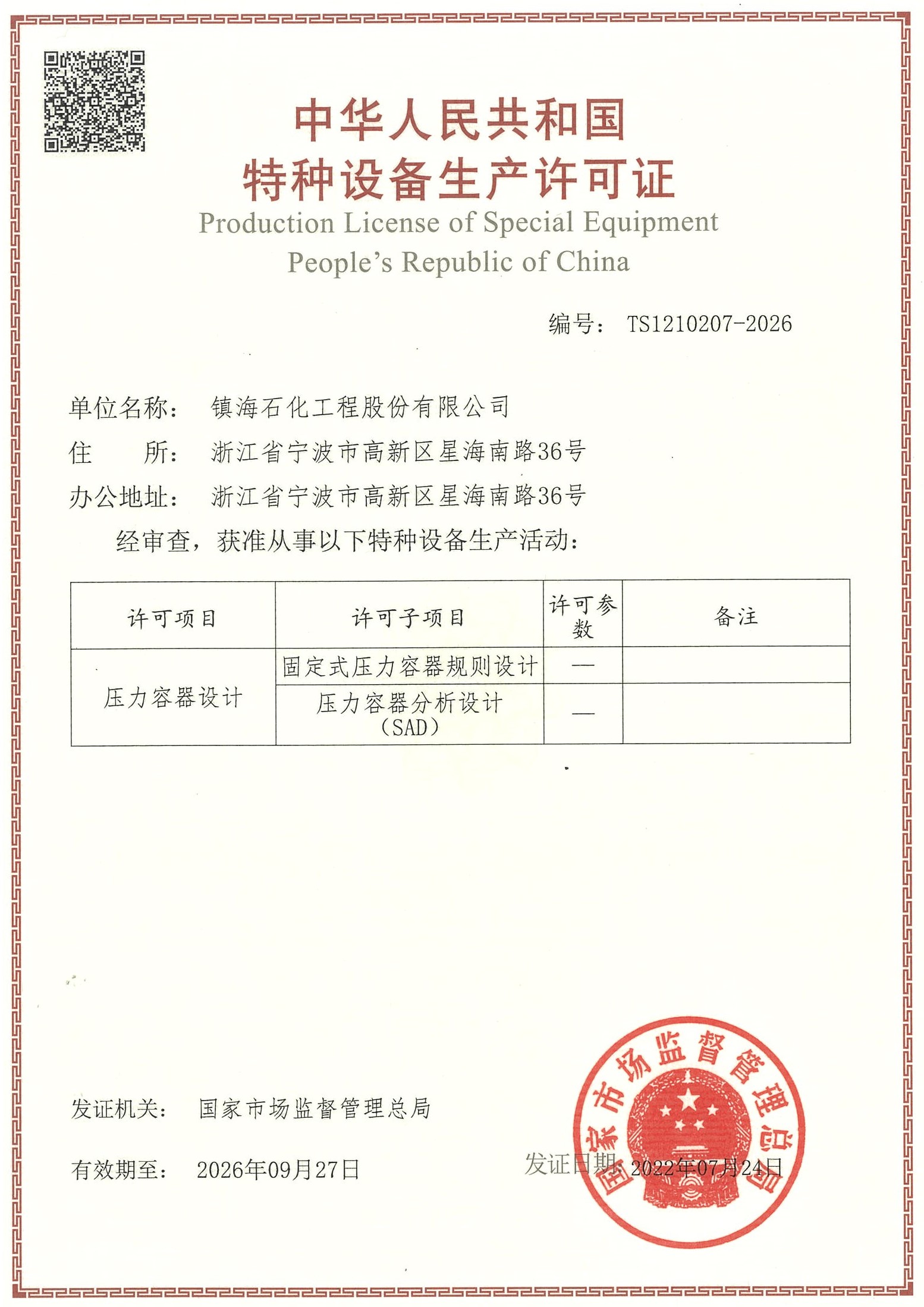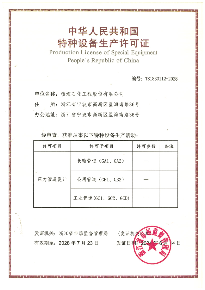 压力管道设计资格证书